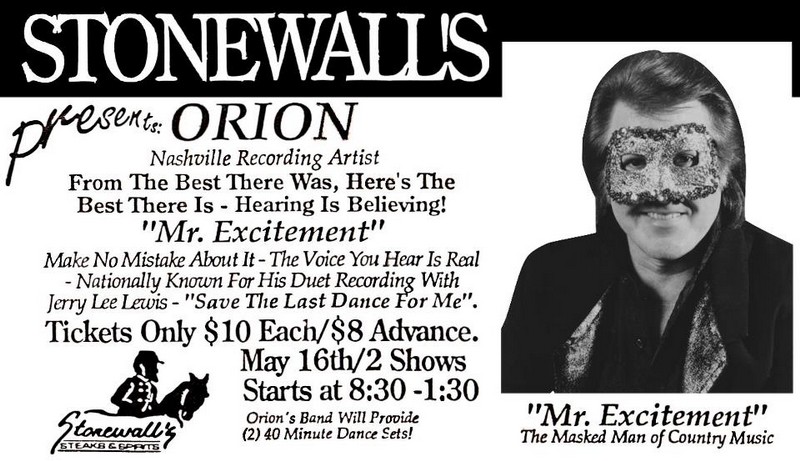 4th. January ---- Manager's Association, Columbus, Ohio5th.January ---- Fair Buyers Showcase, Williamsbury, Virginia6th.January ---- Shane T's, Pasadena, Maryland7th.January ---- Rosedale Gardens, Rosedale, Maryland(Shows at 2:00pm and 7:00pm)8th. January ---- Round Table Restaurant, Laurel, Maryland13th.January ---- Jacksonville, Florida14th.January ---- Homosassa, Florida19th. January ---- Rockin' Robbins, Gastonia, North Carolina20th. January ---- Churchills, Burlington, North Carolina21st. January ---- Earl Dixon's Hillbilly Heaven, Lorton, Virginia26th. January ---- J&J Center/Fairbuyers showcase, Athens & Atlanta,Georgia27th. January ---- Oprah House, Greenville, South Carolina2nd. February ---- Selma, Alabama3rd. February ---- Whiskey River, Macon, Georgia17th. February ---- V.F.W. Post, Livonia, Michigan24th. February ---- Porky's Revenge, Ruffin, North Carolina25th. February ---- Fayette, North Carolina8th. March ---- Tiffany's, Fredricksburg, Maryland9th. March ---- Tiffany's, Fredricksburg, Maryland10th. March ---- Tiffany's, Fredricksburg, Maryland30th. March ---- Gadsden, Alabama31st. March ---- Faunsdale Bar & Grill, Faunsdale, Alabama1st. April ---- Cotton Club, Huntsville, Alabama2nd. April ---- Anduluisa, Alabama7th. April ---- Powdervile Opry, Greenville, South CarolinaApril* ---- Raleigh, North Carolina20th. April ---- Clearwater, Florida21st. April ---- Southern Lights, DeL. and Fla.22nd. April ---- Orlando, Florida30th. April ---- Por' Folks Bar, Kokomo, Indiana12th. May ---- J&J Center, Athens, Georgia13th. May ---- Stonewalls, Norcross, Georgia16th. May ---- Stonewalls, Norcross, Georgia(2 shows)20th. May ---- Memorial Hall, Lima, Ohio27th. May ---- Lake Winnepaukauka, Rossville, Georgia23rd. June ---- Segars, Reidersville, North Carolina24th. June ---- Stonewalls, Norcross, Georgia28th. June ---- Club 21, Atmore, Alabama30th. June ---- Lancelots, Vinton, Virginia.1st. July ---- Earl Dixon's Hillbilly Heaven, Lorton, Virginia27th. July ---- Shreveport, Louisiana1st. August ---- Village Barn, Bradenton, Florida2nd. August ---- Philly's Saloon, West Palm Beach, Florida4th. August ---- Hill Top Lounge, Brooksville, Florida14th. August ---- Desert Rose, Louisville, Kentucky18th. August ---- Silver Dollar Lounge, North Carolina19th. August ---- Rosedale Gardens, Rosedale, Maryland20th. August ---- Page Valley Fair, Luray, Virginia24th. August ---- Lancelots, Vinton, Virginia25th. August ---- Rainbow Road, Rippon, West Virginia26th. August ---- Earl Dixon's Hillbilly Heaven, Lorton, Virginia25th. October ---- Philly's Saloon, West Palm Beach, Florida27th. October ---- National Guard Armory, Selma, Alabama17th. November ---- Palamino Club, Stafford, Virginia31st. November ---- Circleville, Ohio29th. December ---- Circleville, Ohio31st. December ---- Opelousas, LouisianaVideo footage exists of this performance or engagement and is available on the collector's circuitIn several cases the audio soundtrack has also been made available on collector's disc.An audio recording exists of this performance or engagement and is available on the collector's circuit* Exact date not known