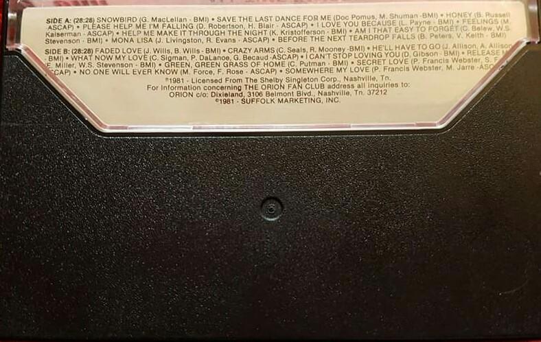 Snowbird; Save The Last Dance For Me (Solo version); Honey; Please Help Me I'm Falling; Feelings; Help Me Make It Through The Night; Am I That Easy To Forget; Mona Lisa; Before The Next Teardrop Falls; I Love You Because; Faded Love; Crazy Arms; Release Me; Green Green Grass Of Home; Secret Love; He'll Have To Go; What Now My Love; No One Will Ever Know; I Can't Stop Loving You; Somewhere My Love.