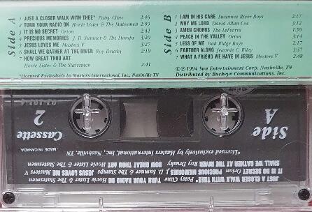 Disc Two: Just A Closer Walk With Thee (Patsy Cline); Turn Your Radio On (Hovie Lister & The Statesmen); It Is No Secret (Orion); I Am In His Care (Swanee River Boys); Jesus Loves Me (Masters V); Shall We Gather At The River (Roy Drusky); How Great Thou Art (Hovie Lister & The Statesmen); Precious Memories (J.D. Sumner & The Stamps); Why Me Lord (David Allan Coe); Amen Chorus (The LeFevres); Peace In The Valley (Orion); Less Of Me (Oak Ridge Boys); Farther Along (Jeannie C. Riley); What A Friend We Have In Jesus (Masters V); Church In The Wildwood (Leroy Van Dyke); Somebody Loves Me (The Speers); Amazing Grace (Dave Dudley); The Old Country Church (The Blackwood Brothers); Where He Leads Me (Orion); Remember Me (Johnny Cash).