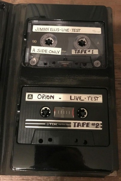 A selection of rare cassettes and studio reels featuring various unreleased and alternate Ellis/Orion audio and video recordings. Most of the items pictured are in the hands of private collectors.