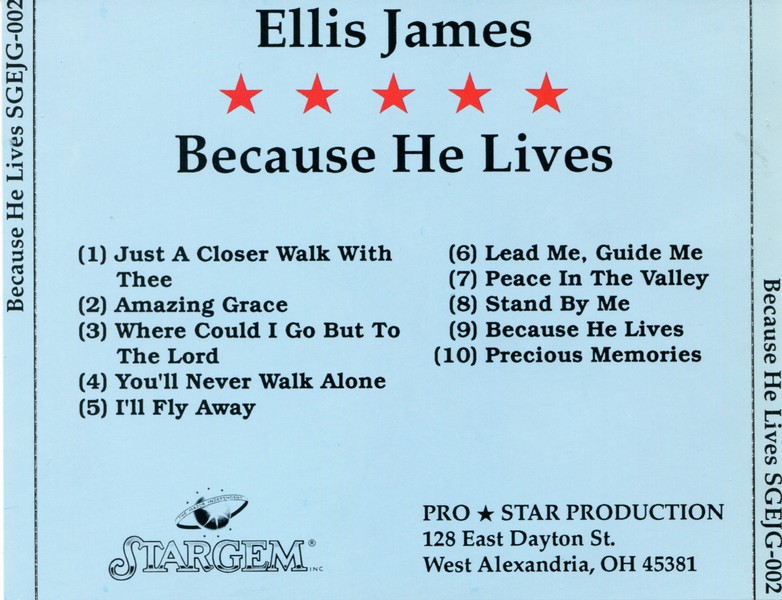 Just A Closer Walk With Thee; Amazing Grace; Where Could I Go But to The Lord; You'll Never Walk Alone; I'll Fly Away; Lead Me, Guide Me; Peace In The Valley; Stand By Me; Because He Lives; Precious Memories.