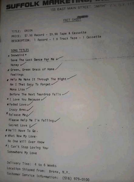 NOTES: Special U.S. only TV advertised album credited to Orion.