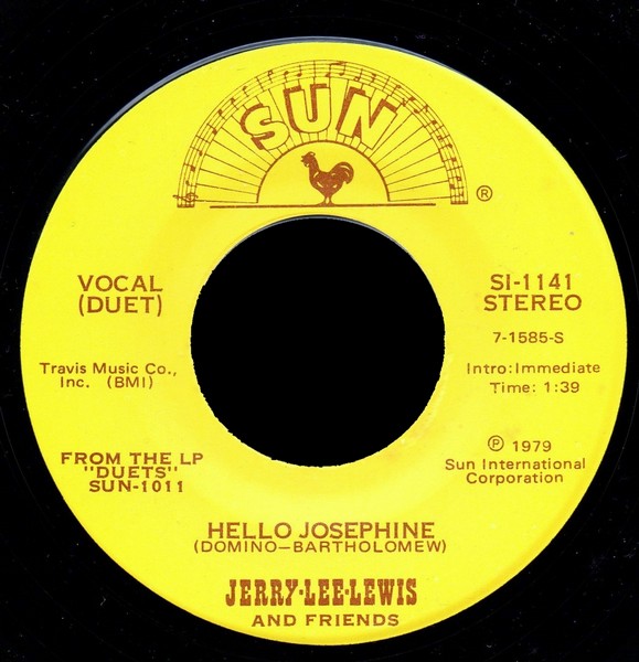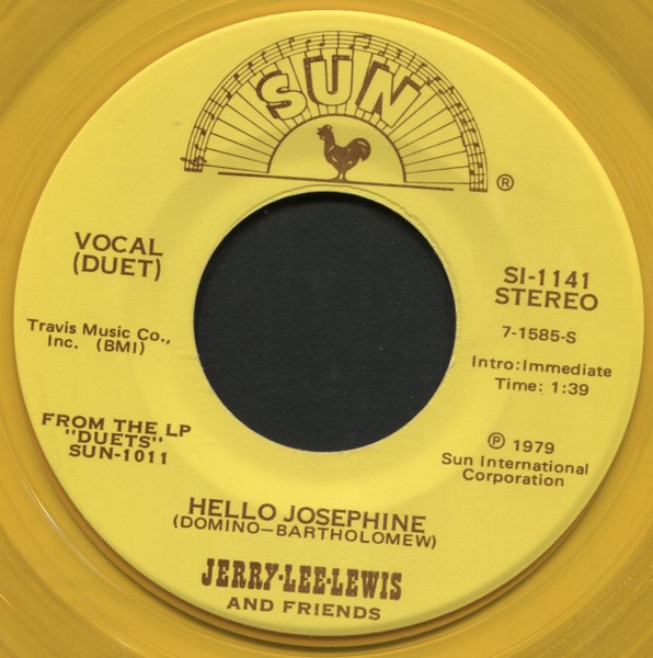 NOTES: Side A features a duet by Jerry Lee Lewis and "Friend" - Jimmy Ellis. Side B is a duet by Jerry Lee Lewis and fellow Sun artist Charlie Rich and, despite rumours to the contrary, has no Jimmy Ellis connection. This track has often been incorrectly quoted as being a duet by Jerry Lee Lewis and Elvis Presley.
