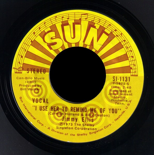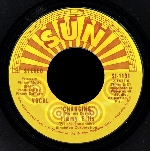 SPECIAL NOTE: The records shown above constitute Jimmy Ellis' 45rpm Sun Records singles issued from 1972 - 1973.
