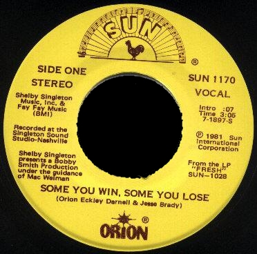 This single was rumoured to have been released, possibly as a DJ promo but no real evidence surfaced to verify this. Other sources stated that the coupling was actually OLD TIME FEELING/SOME YOU WIN, SOME YOU LOSE and gave a catalogue number of SUN SI-1178. Further Information surfacing in November 2001 indicated that SUN SI-1179 featured the Orion coupling THAT OLD TIME FEELING/I WANT TO BE IN PICTURES. The latter track being a recording previously unknown to Orion collectors. There was also speculation that promo singles featuring this coupling may have been sent out to radio stations at some time.