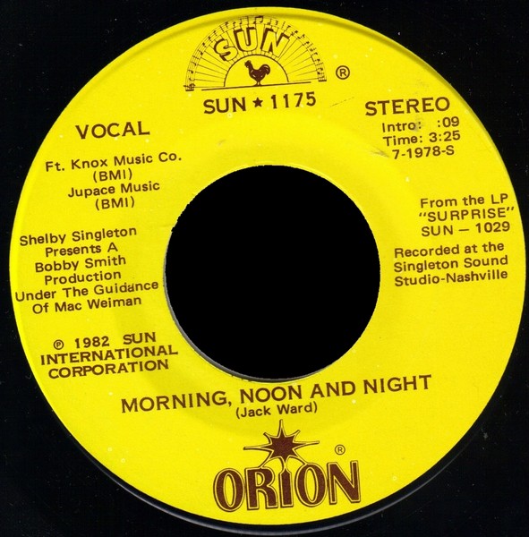 NOTE: Both these tracks were intended for inclusion on a forthcoming Sun album release (SURPRISE - SUN 1029) which was cancelled before release, despite Jimmy's appearing on U.S. television miming to Morning, Noon And Night, the A side of his new single, and promoting the forthcoming album.